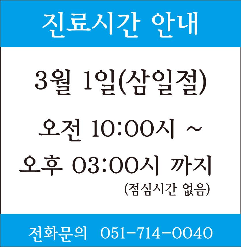 3월 1일(화요일)은 오후 3시까지 진료하고 있습니다.