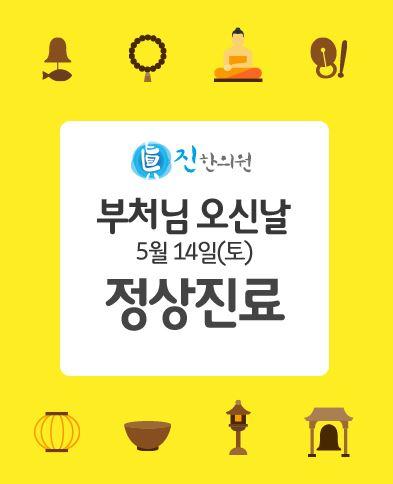 안녕하세요 부산 해운대 진 한의원입니다.5월 14일(토요일) 석가탄신일은 오전 10:00 ~ 오후 3:00까지 정상 진료를 하고 있습니다.
