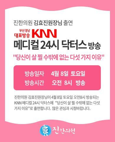 4월8일(토요일) 오전 8시 KNN 메디컬24시 닥터스에 진한의원이 출연합니다.