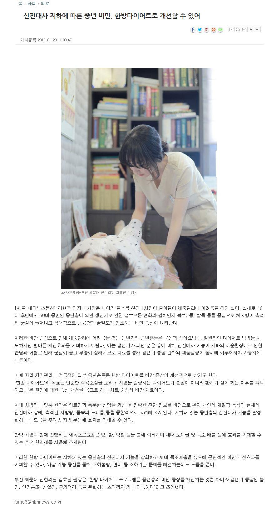 32 | [내외뉴스] 신진대사 저하에 따른 중년 비만, 한방다.. | | 2018.01.24 | 22,877 |