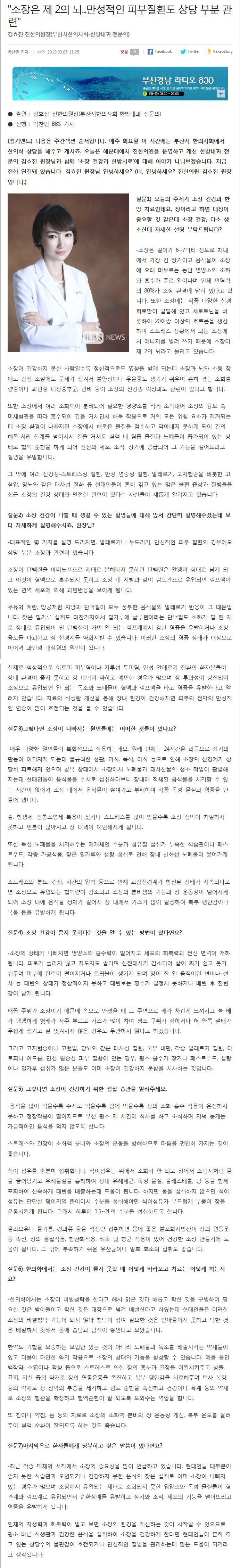 39 | [BBS뉴스] `소장은 제 2의 뇌. 만성적인 피부질환도 관.. | | 2019.03.06 | 23,646 |