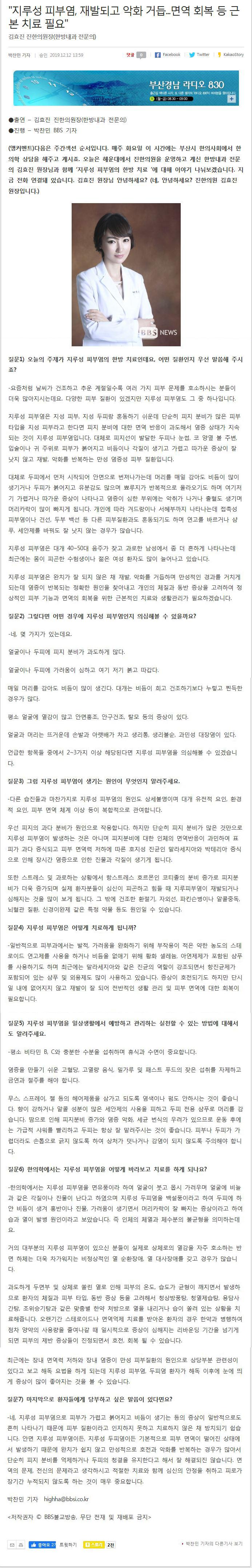 46 | [BBS뉴스] `지루성 피부염, 재발되고 악화 거듭... 면역.. | | 2019.12.13 | 27,605 |